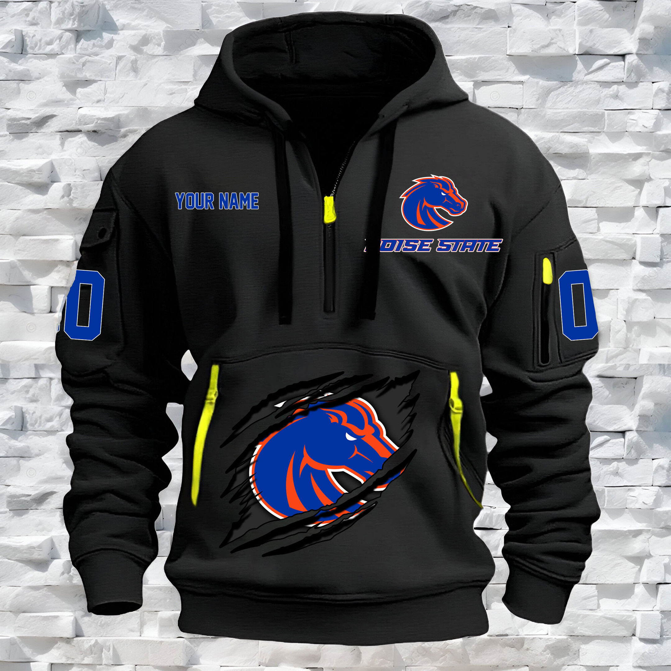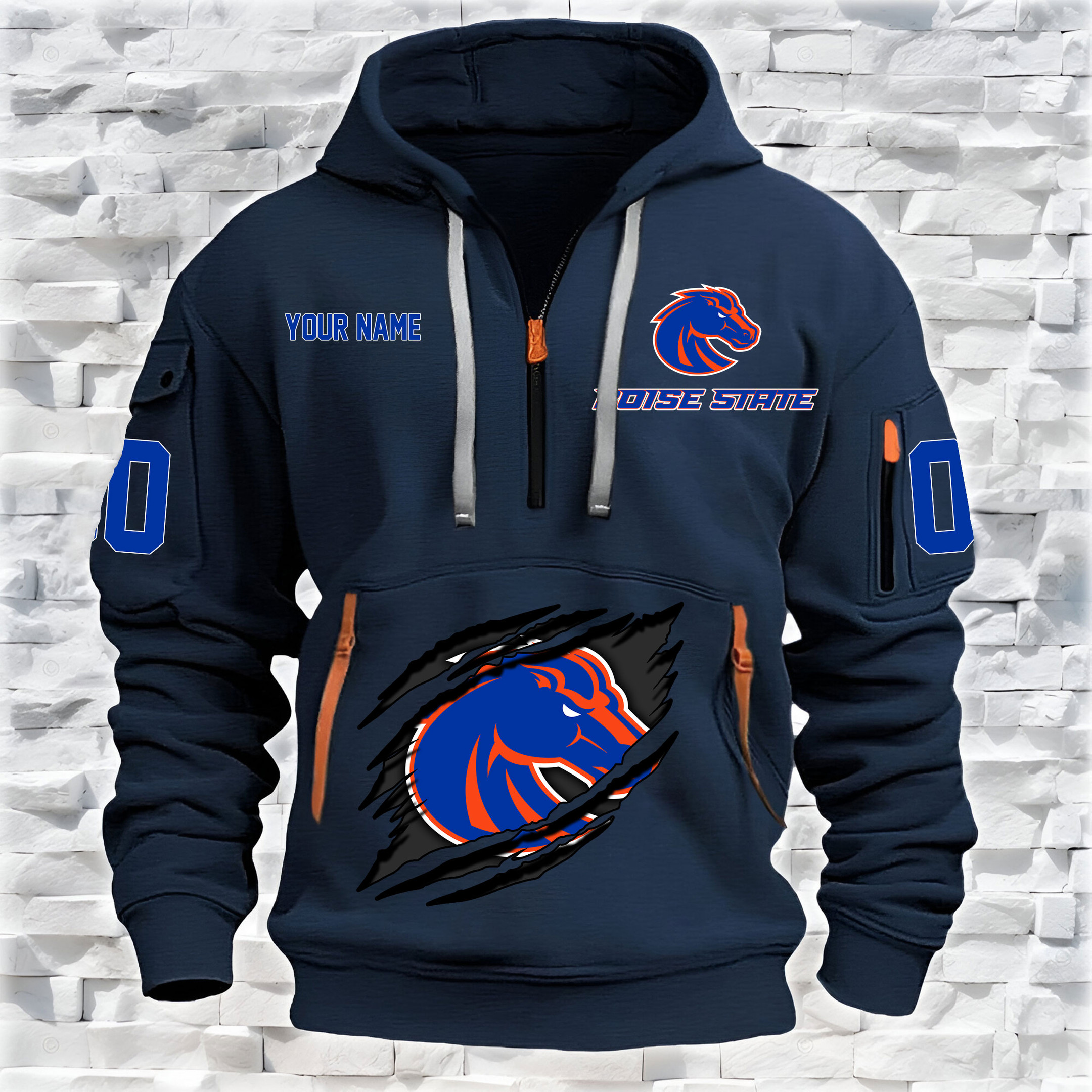 Boise State Broncos – Custom Name and Number Quarter Zip Hoodie