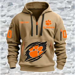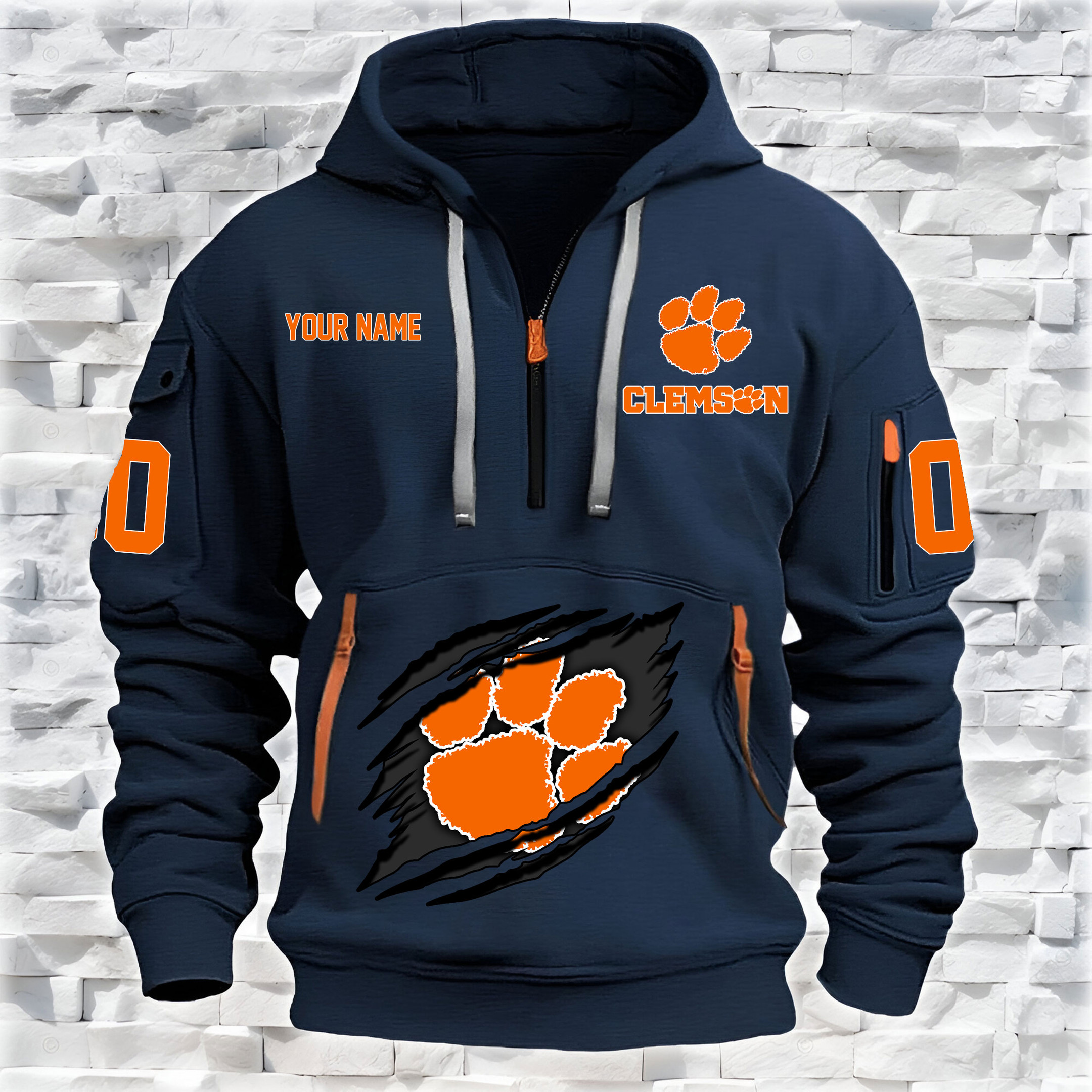 Clemson Tigers – Custom Name and Number Quarter Zip Hoodie