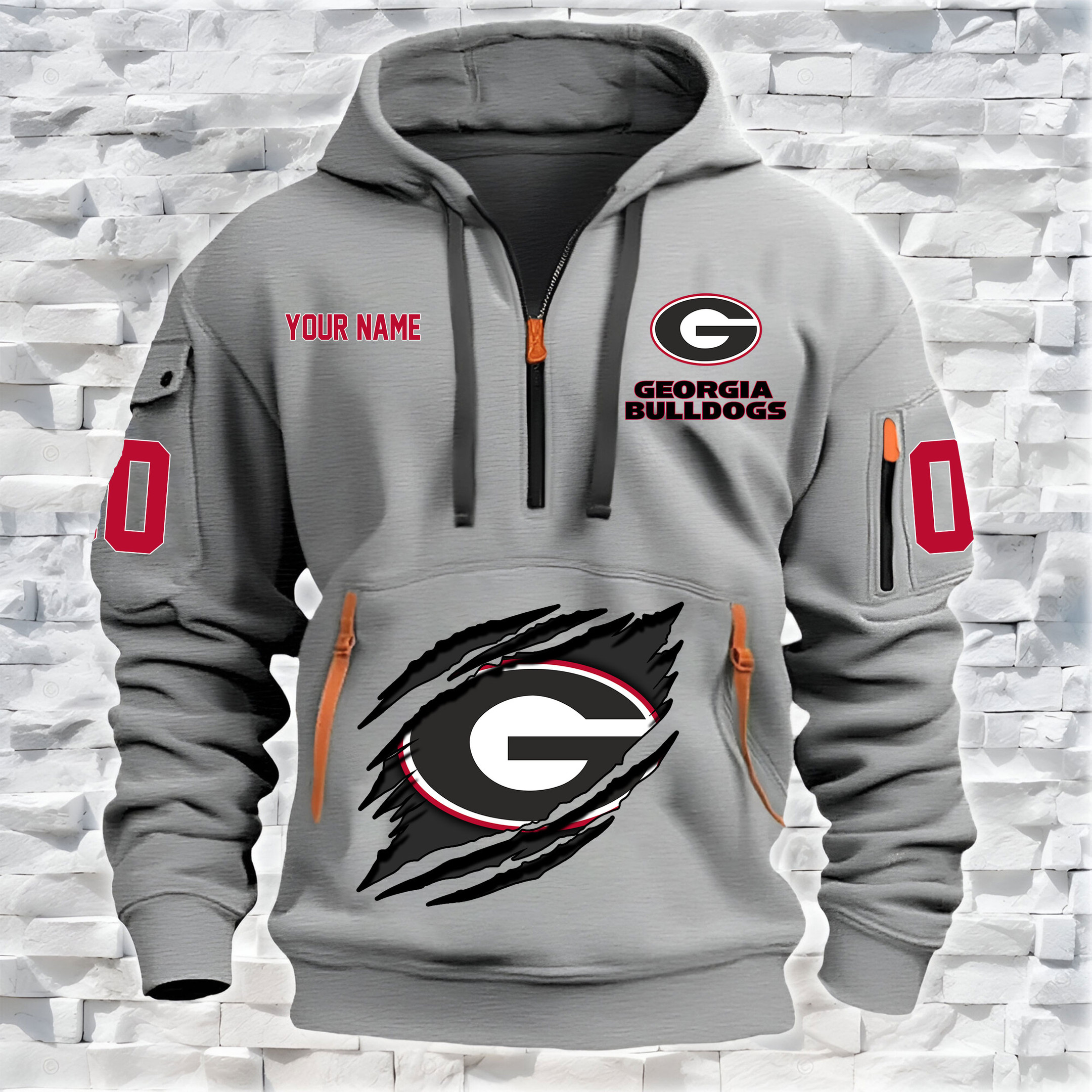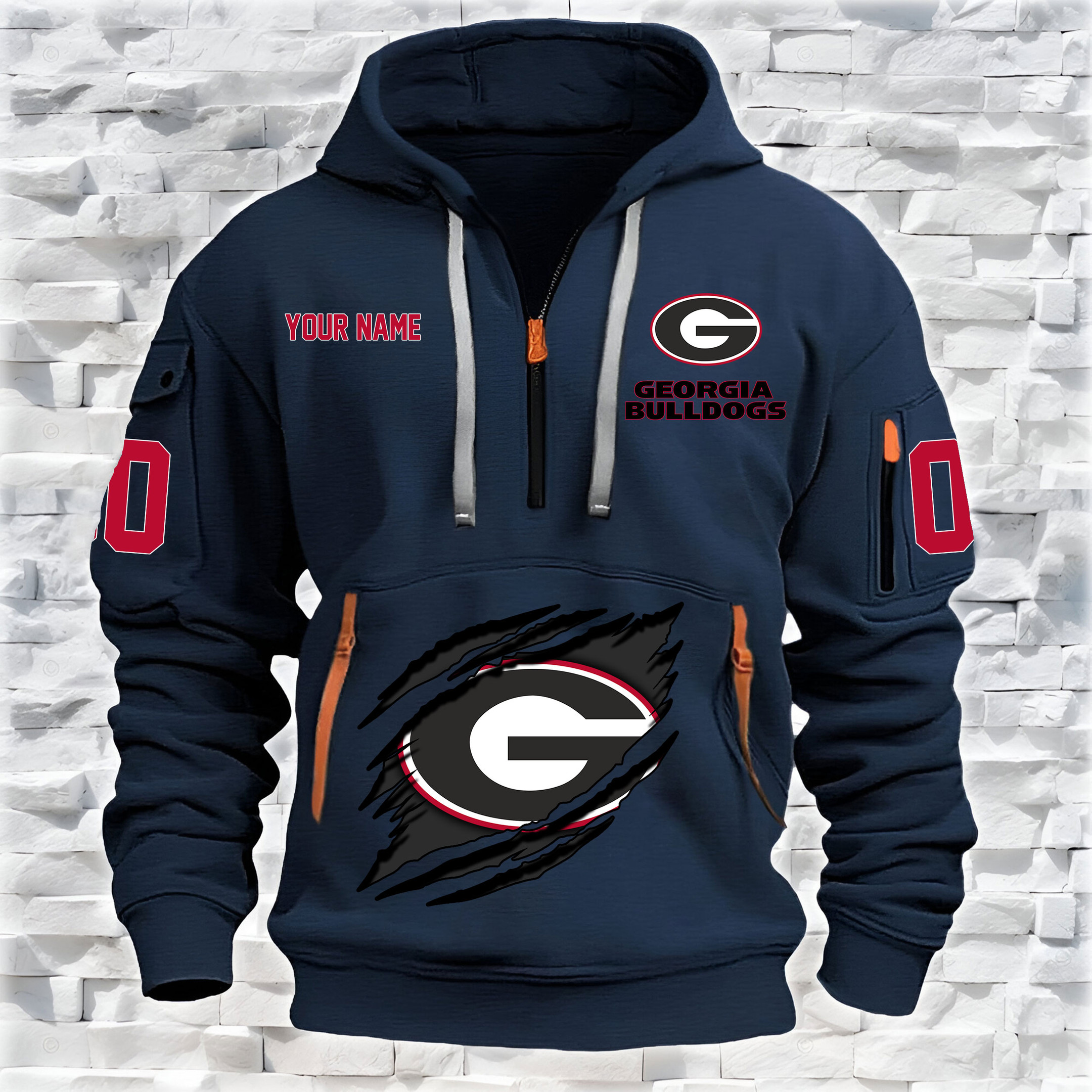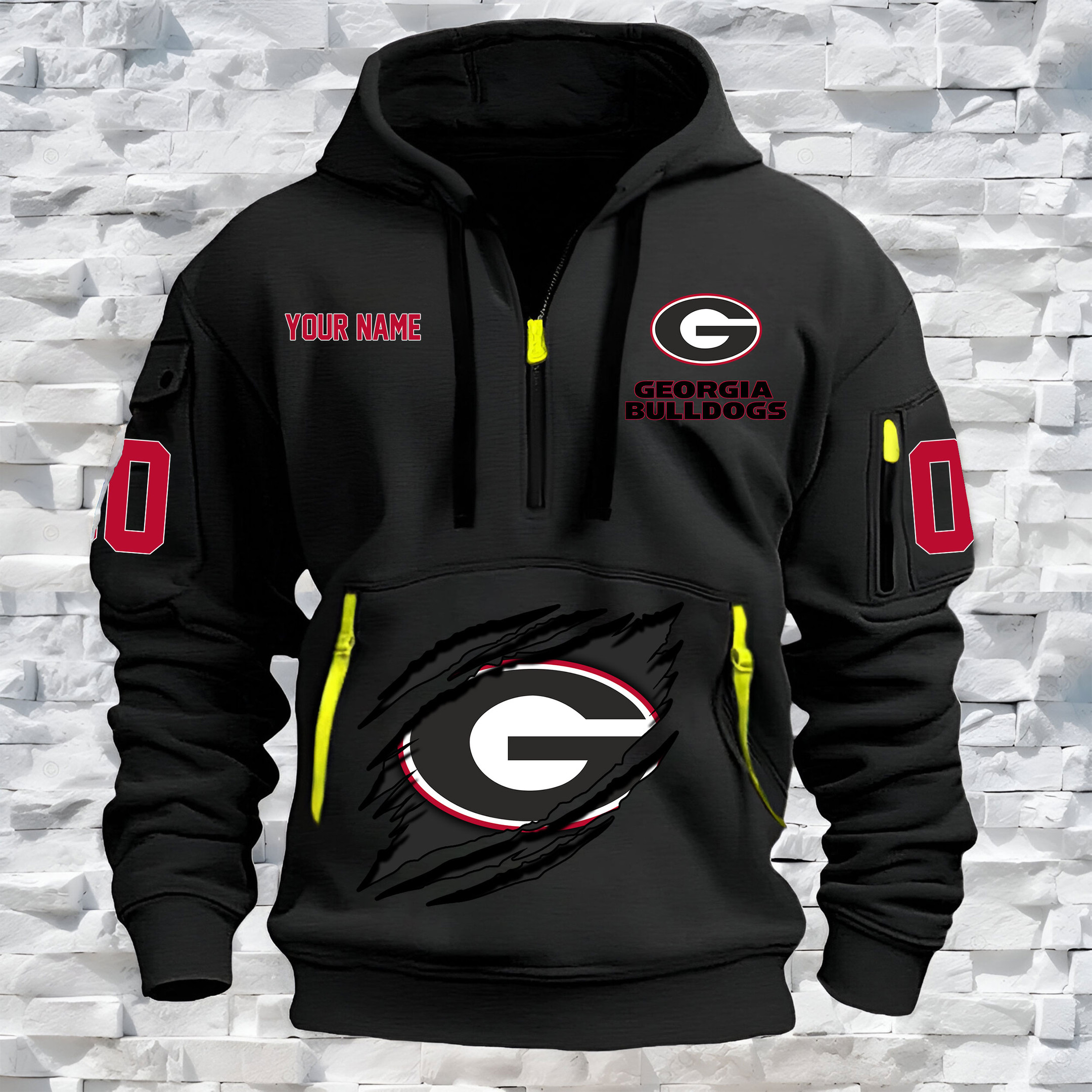 Georgia Bulldogs – Custom Name and Number Quarter Zip Hoodie