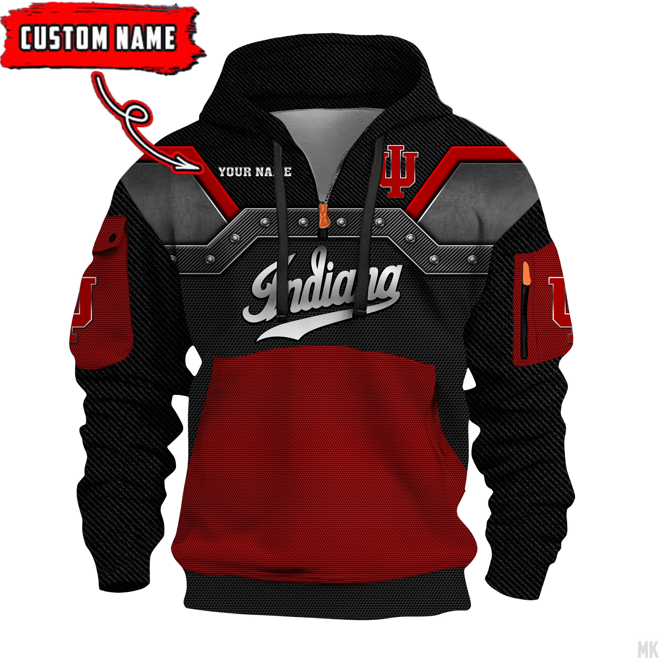 Indiana Hoosiers – 3D Quarter Zip Hoodie For Fans