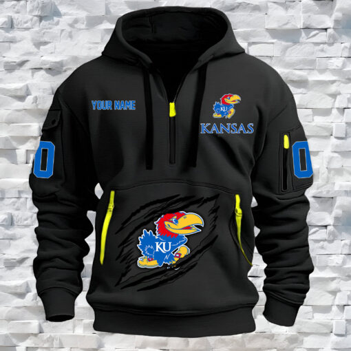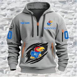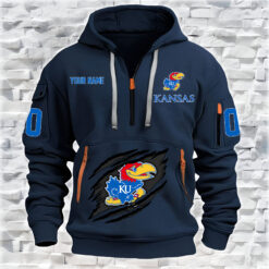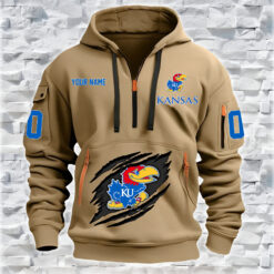 Kansas Jayhawks – Custom Name and Number Quarter Zip Hoodie