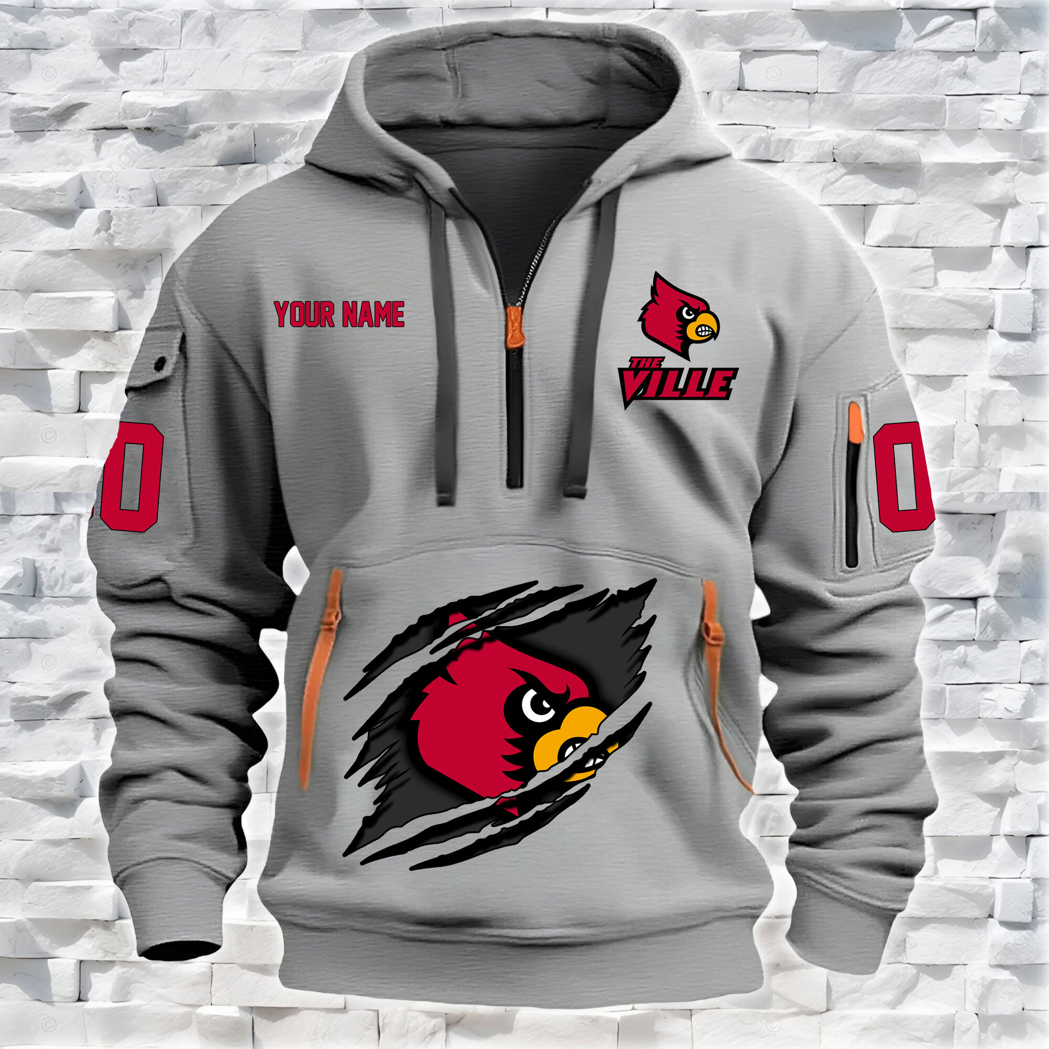 Louisville Cardinals – Custom Name and Number Quarter Zip Hoodie