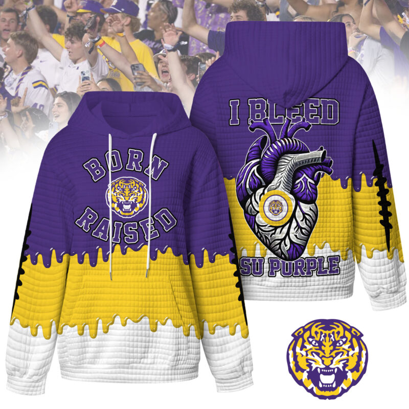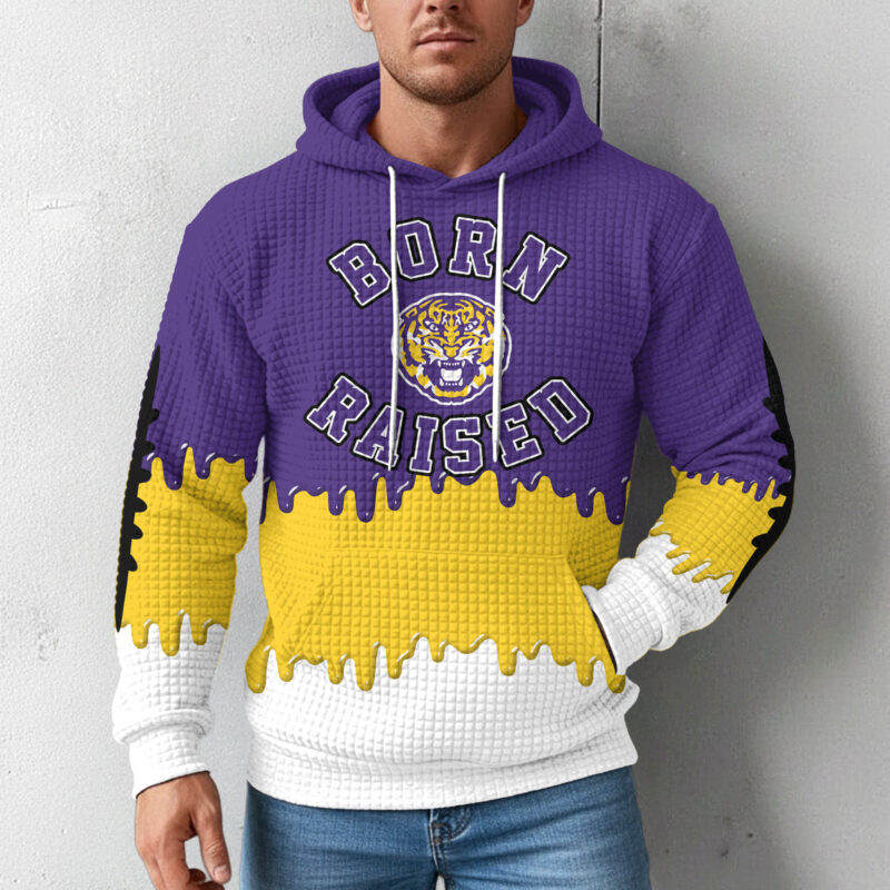 LSU TIGERS – Unisex Born and Raised Waffle Hoodie