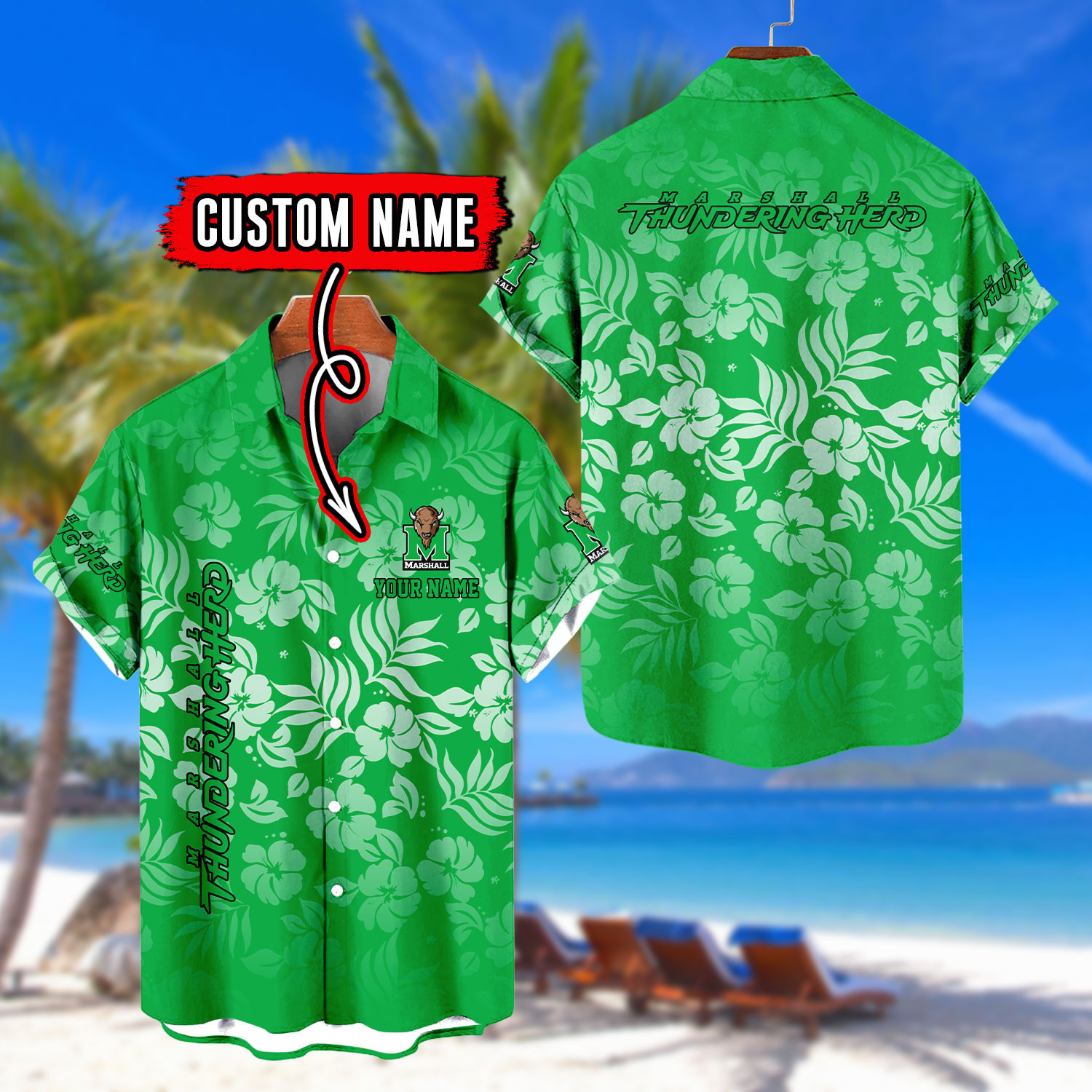 Marshall Thundering Herd | Custom Name Tropical Floral Aloha Shirt for Fans FT18326