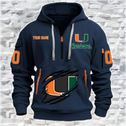 Miami Hurricanes – Custom Name and Number Quarter Zip Hoodie