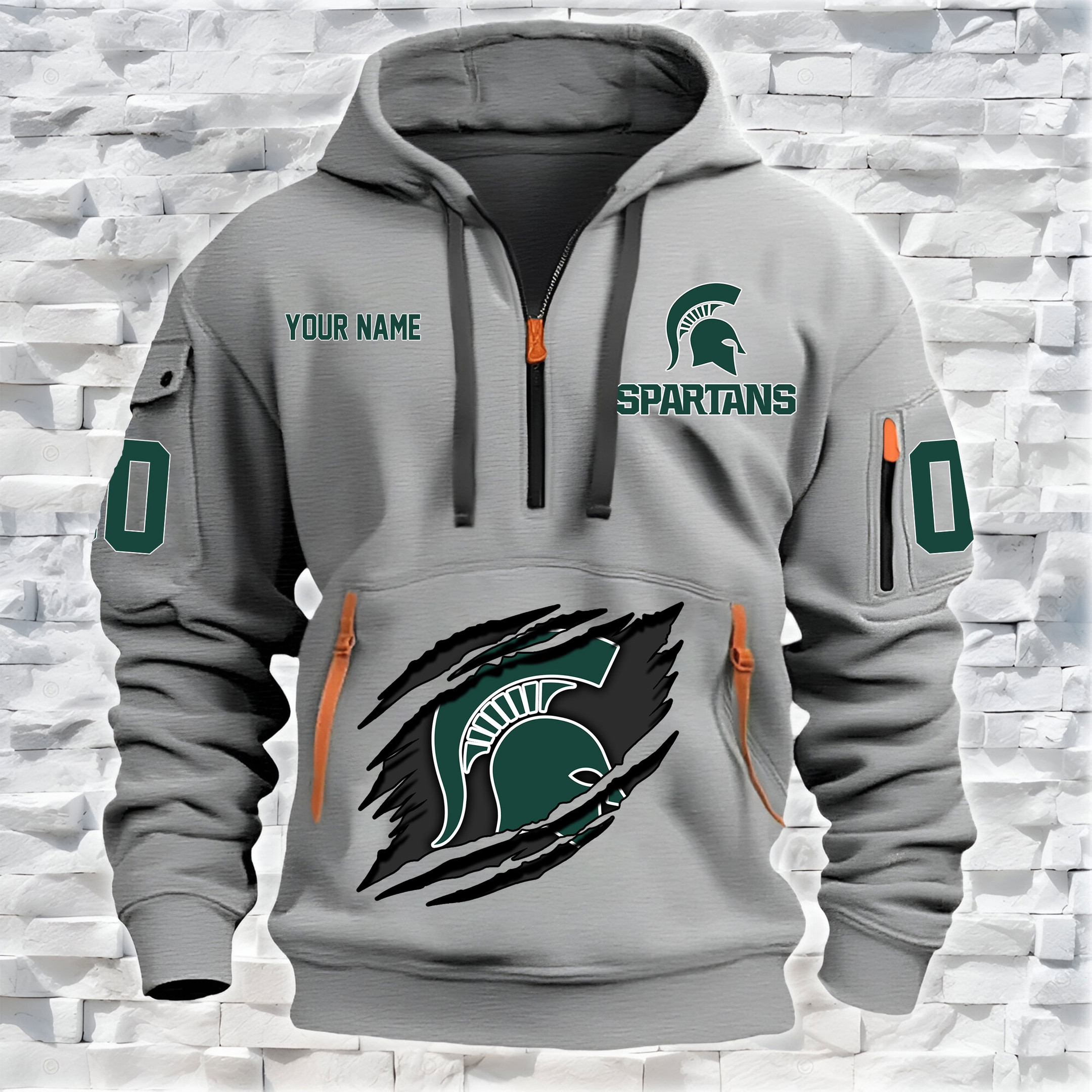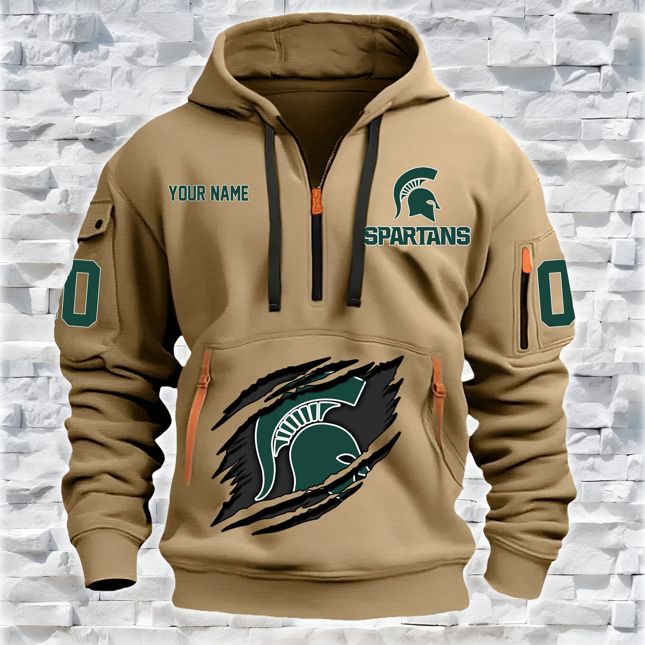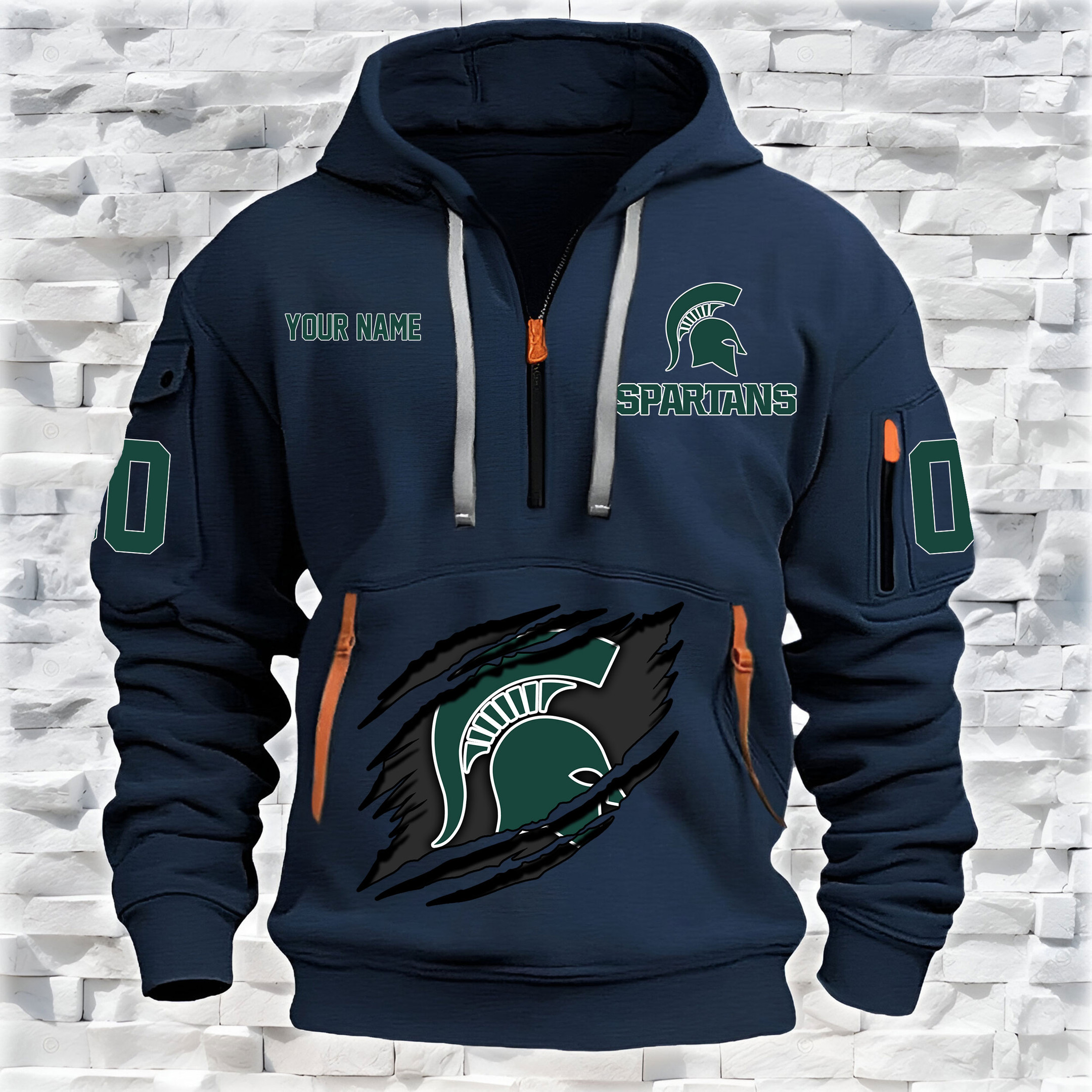 Michigan State Spartans – Custom Name and Number Quarter Zip Hoodie