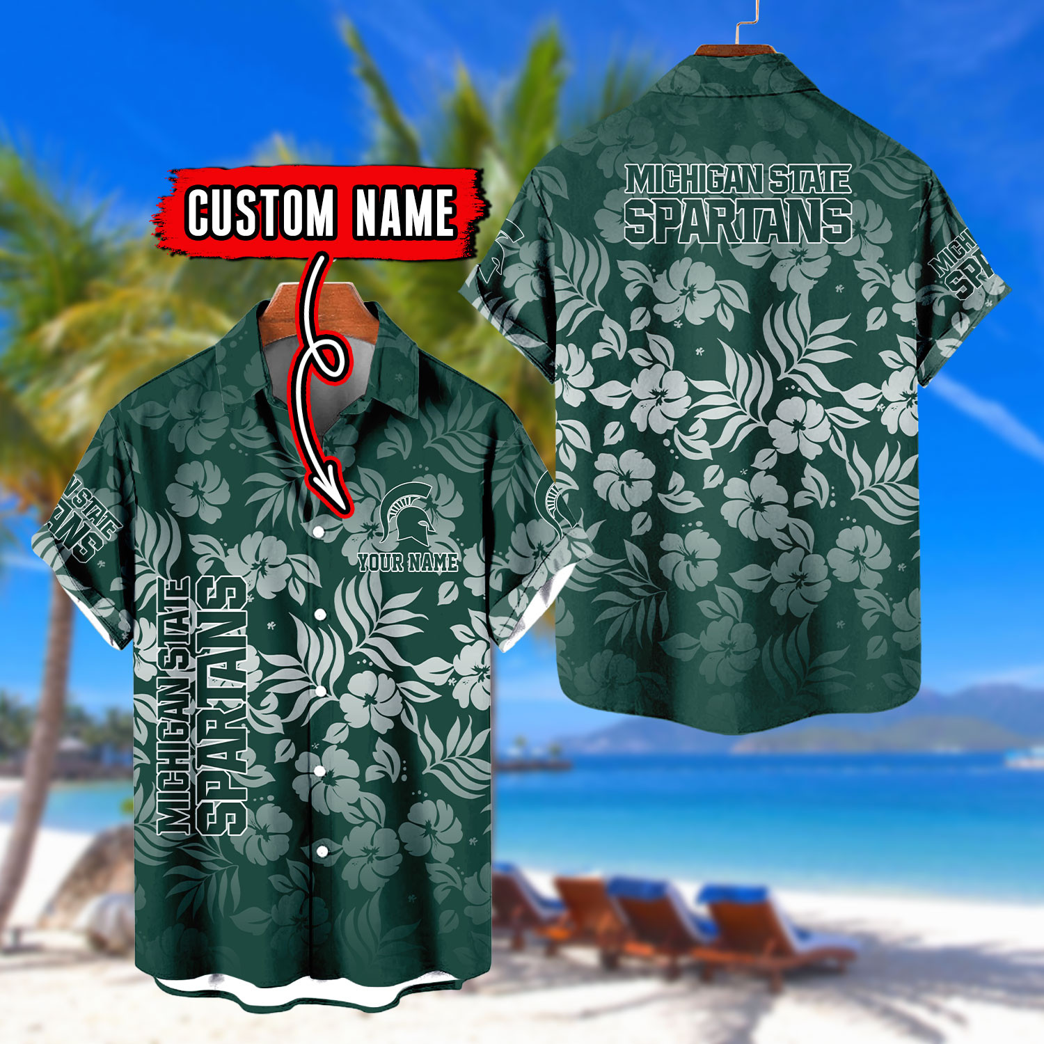 Michigan State Spartans | Custom Name Tropical Floral Aloha Shirt for Fans FT18326