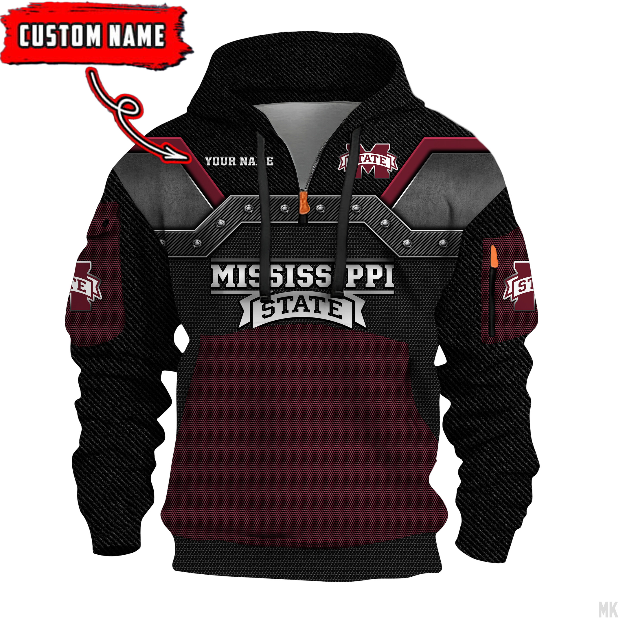 Mississippi State Bulldogs – 3D Quarter Zip Hoodie For Fans
