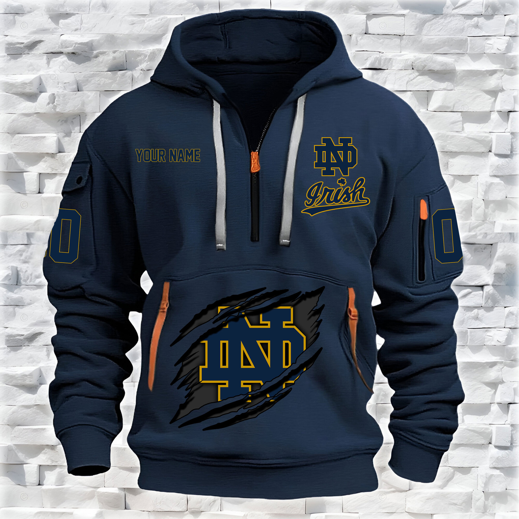 Notre Dame Fighting Irish – Custom Name and Number Quarter Zip Hoodie