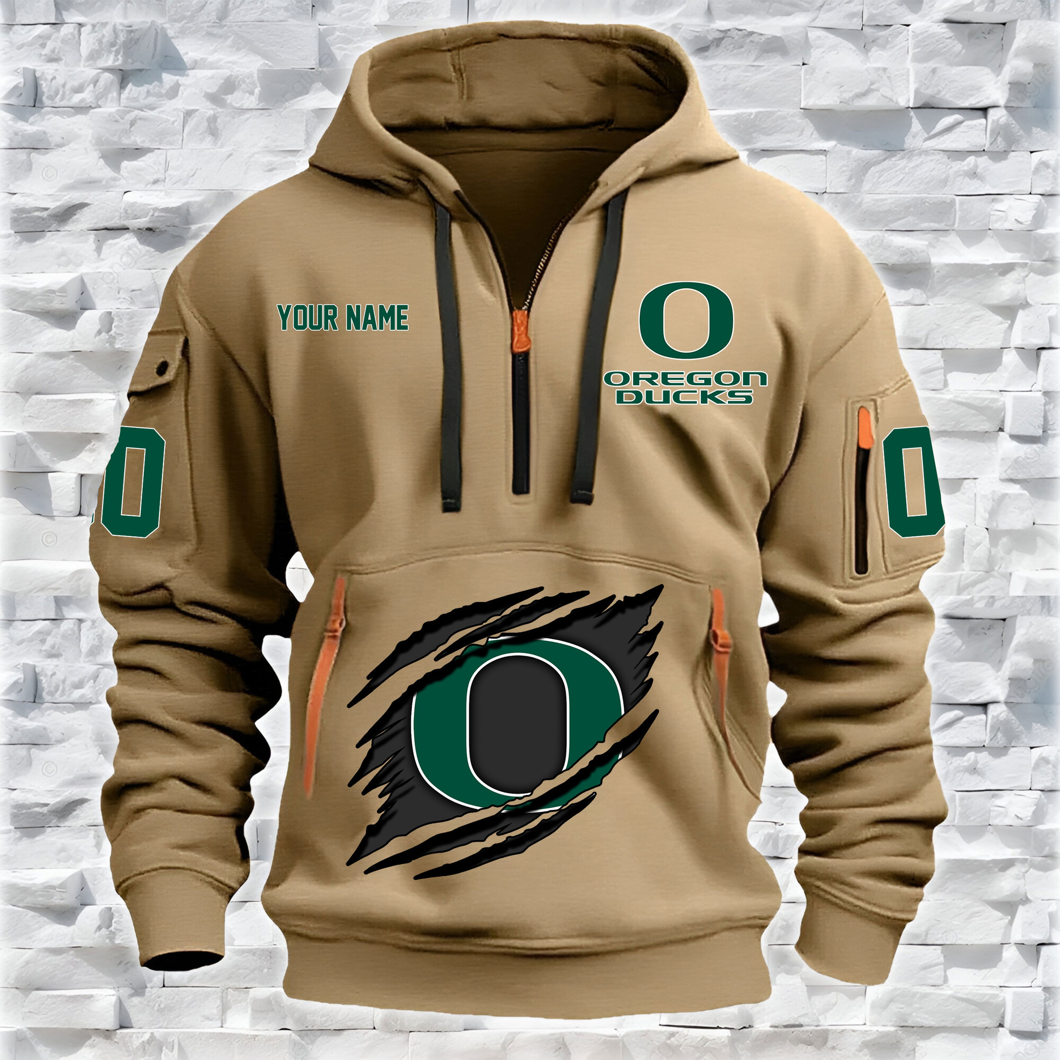 Oregon Ducks – Custom Name and Number Quarter Zip Hoodie