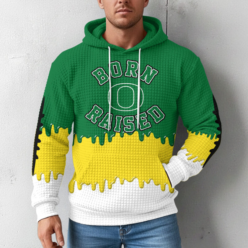 Oregon Ducks – Unisex Born and Raised Waffle Hoodie