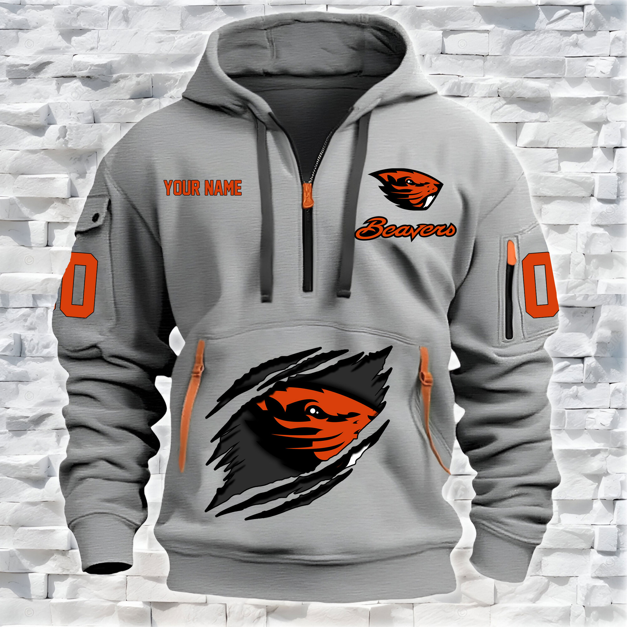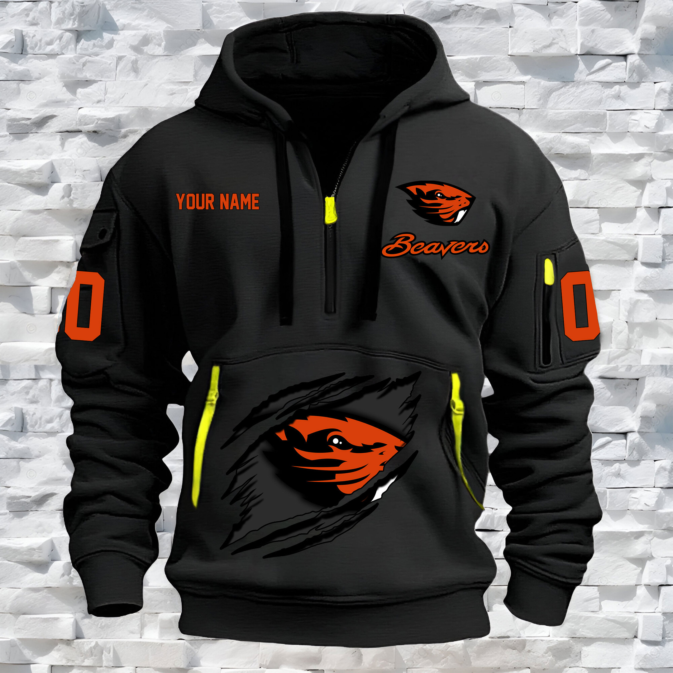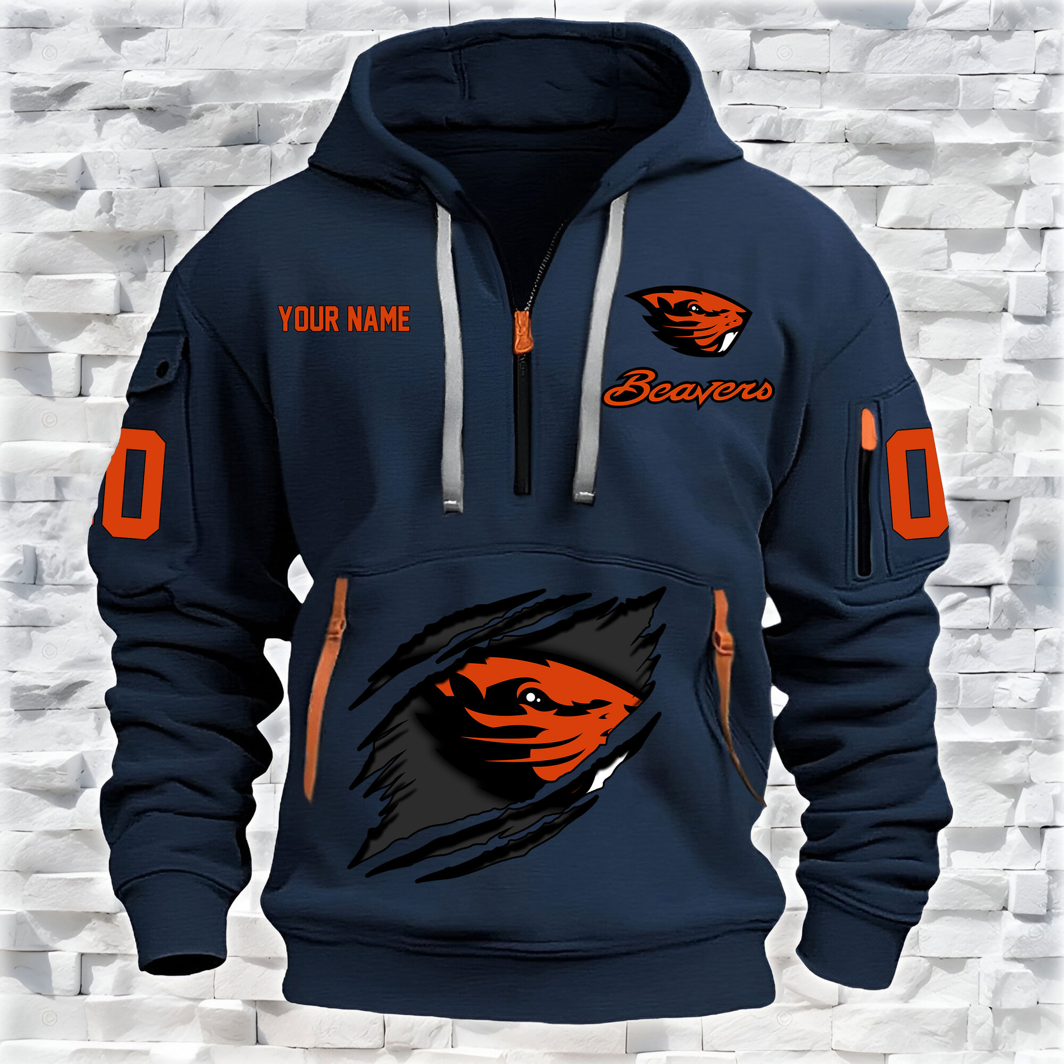 Oregon State Beavers – Custom Name and Number Quarter Zip Hoodie
