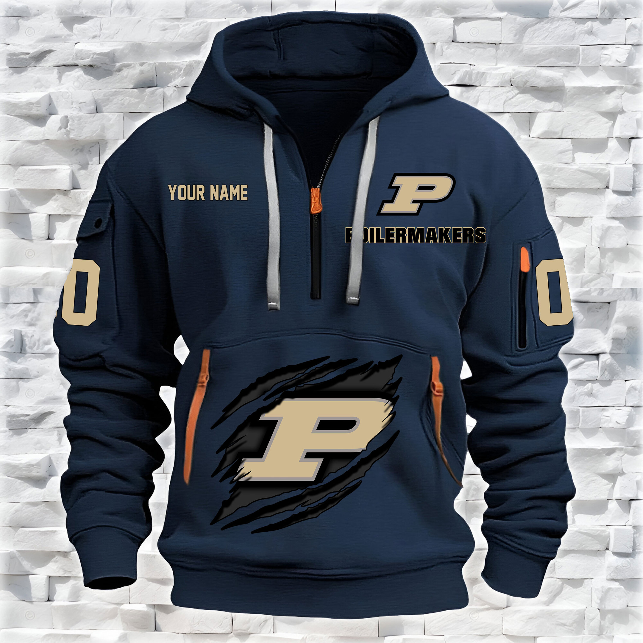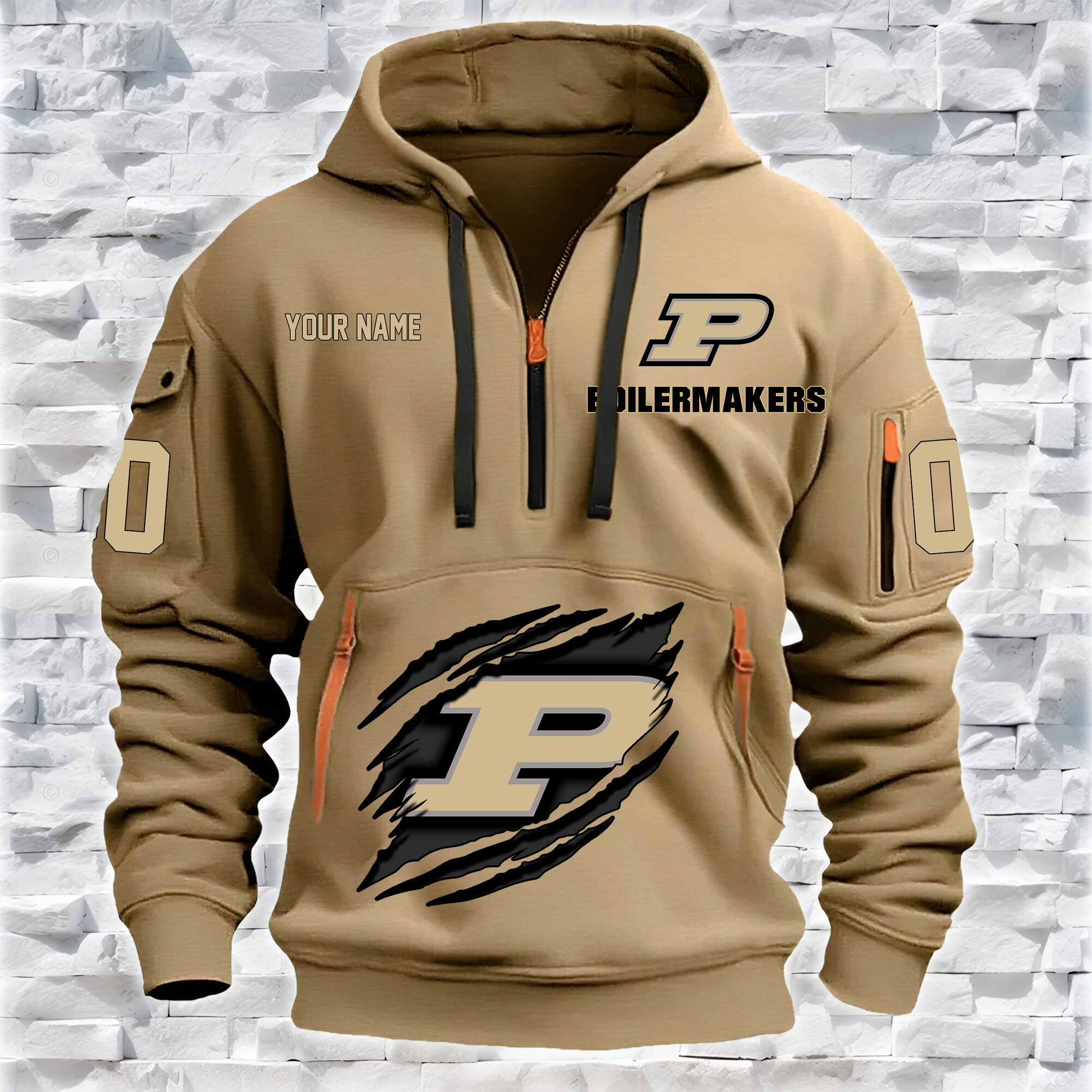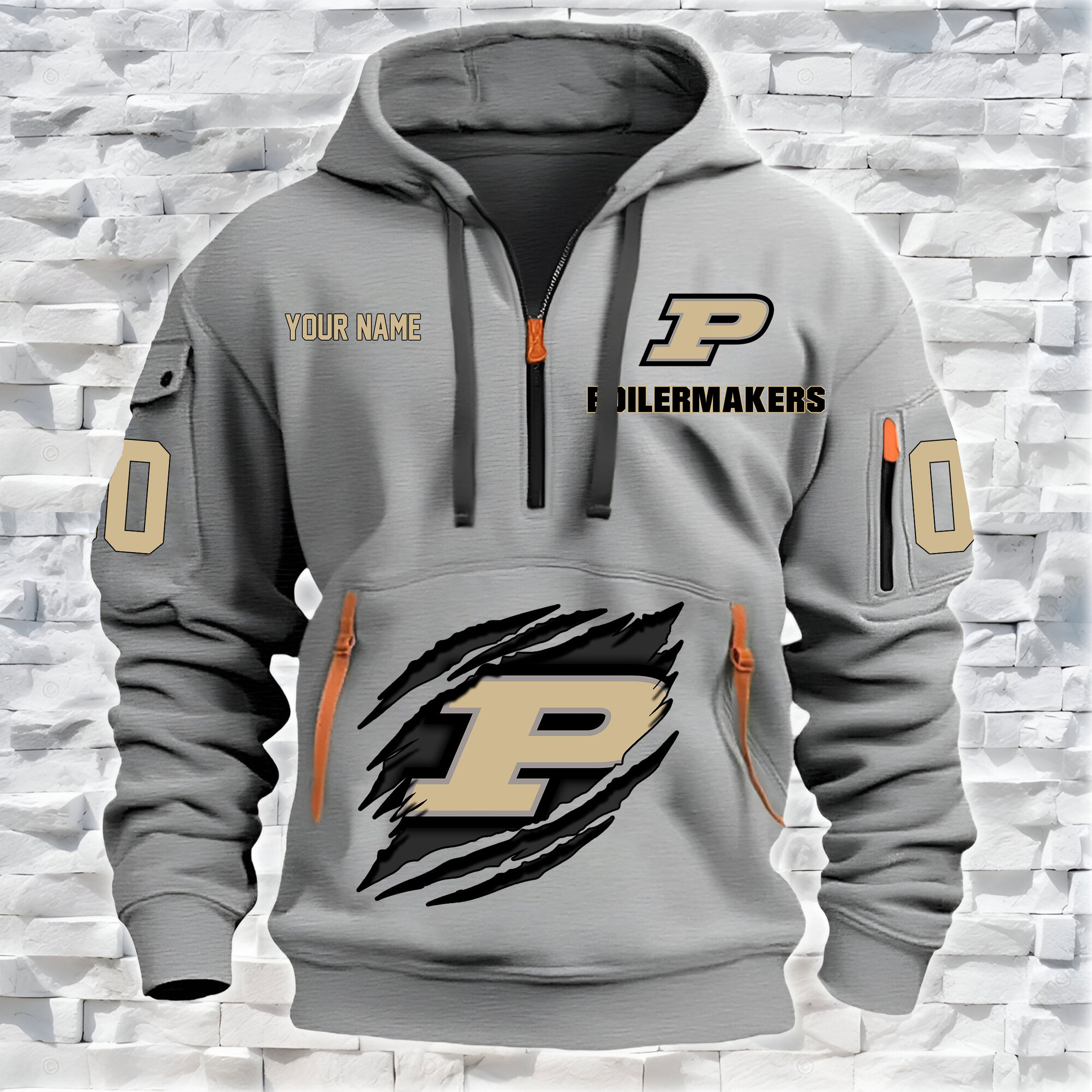 Purdue Boilermakers – Custom Name and Number Quarter Zip Hoodie