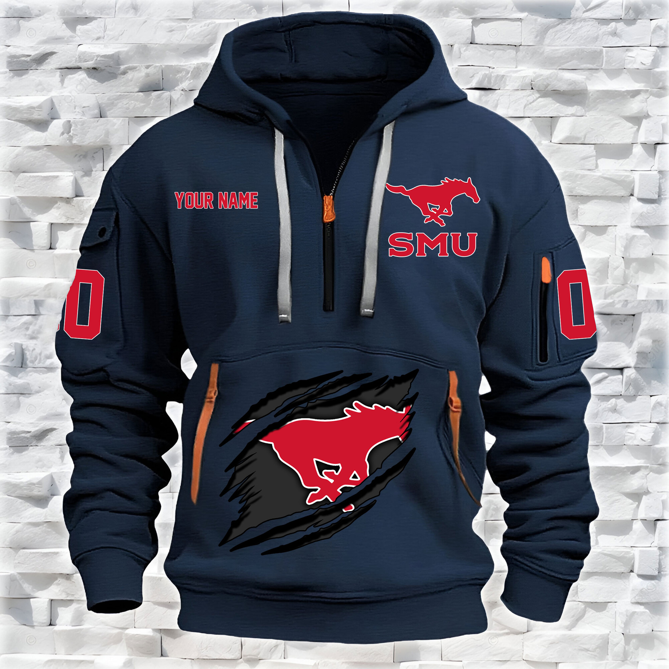 SMU Mustangs – Custom Name and Number Quarter Zip Hoodie