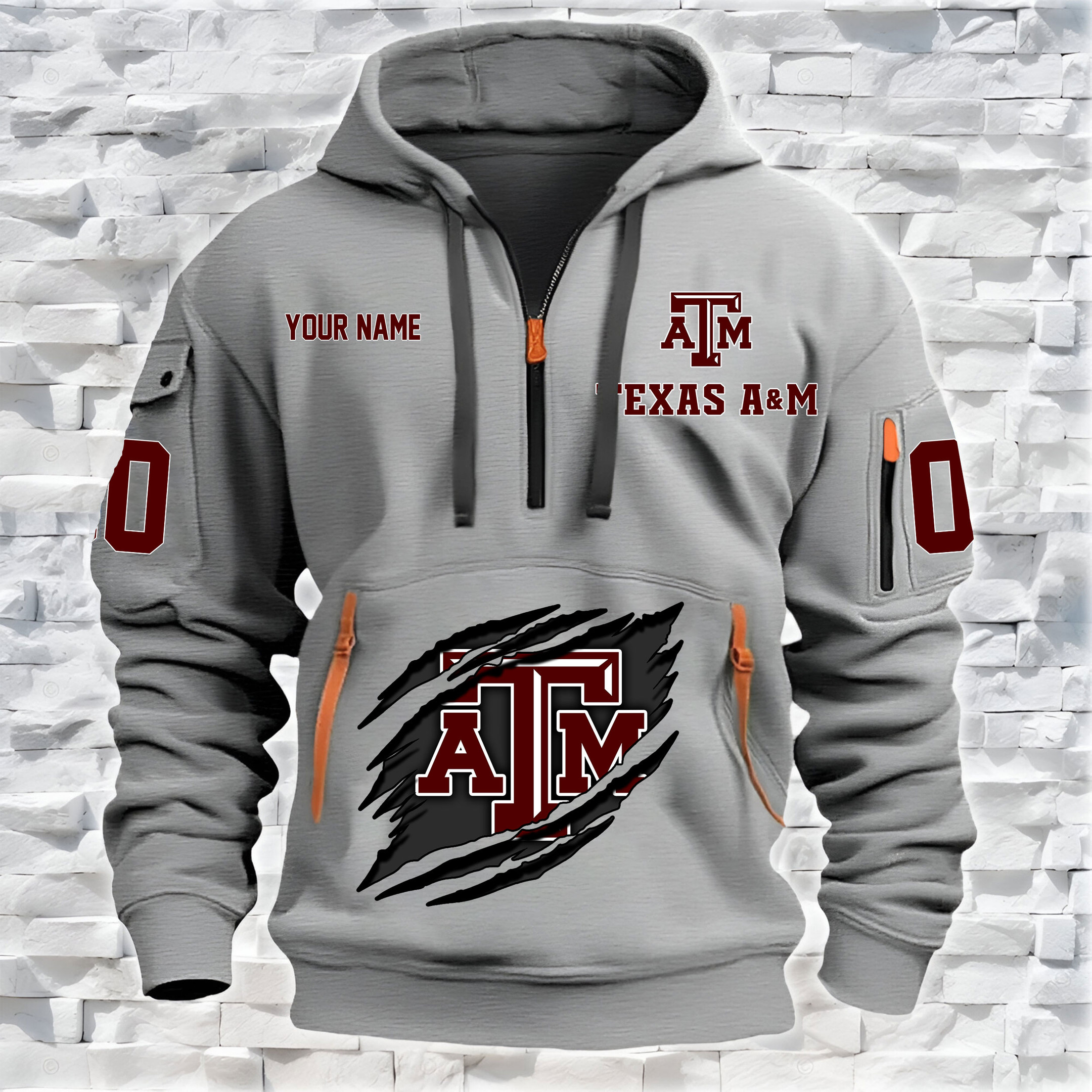 Texas A&M Aggies – Custom Name and Number Quarter Zip Hoodie