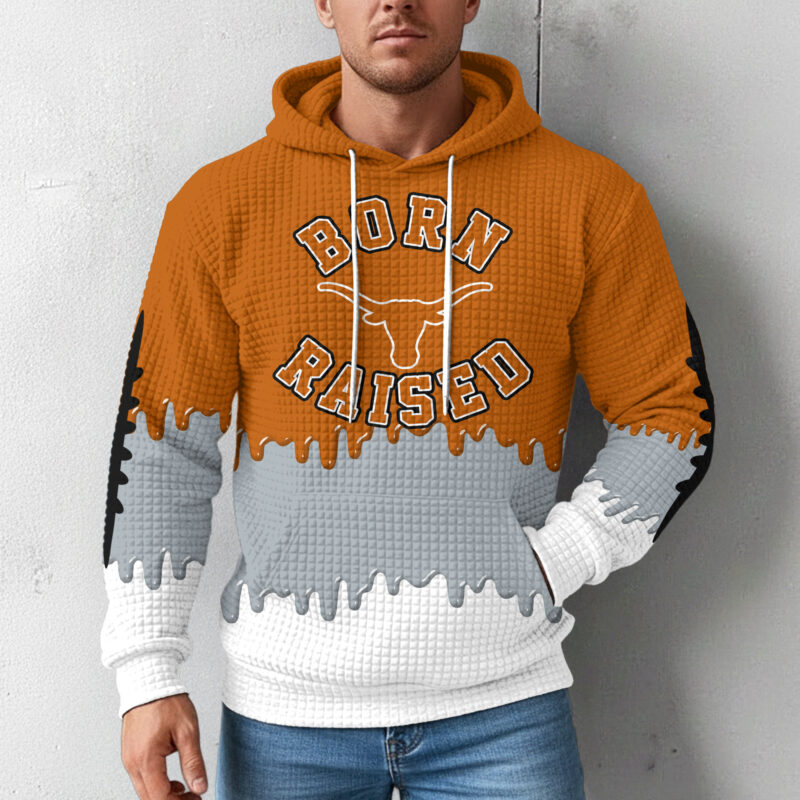 Texas Longhorns – Unisex Born and Raised Waffle Hoodie