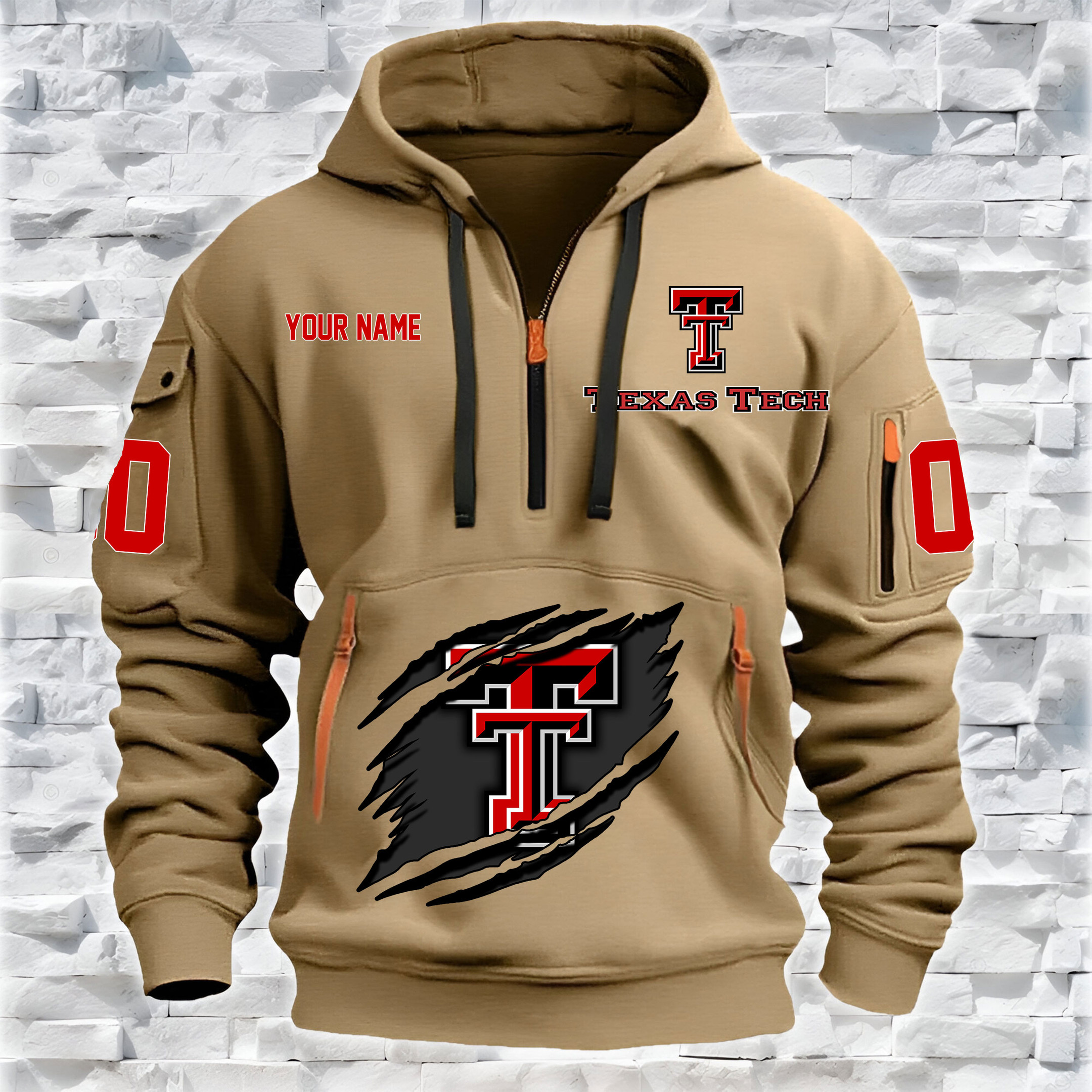 Texas Tech Red Raiders – Custom Name and Number Quarter Zip Hoodie