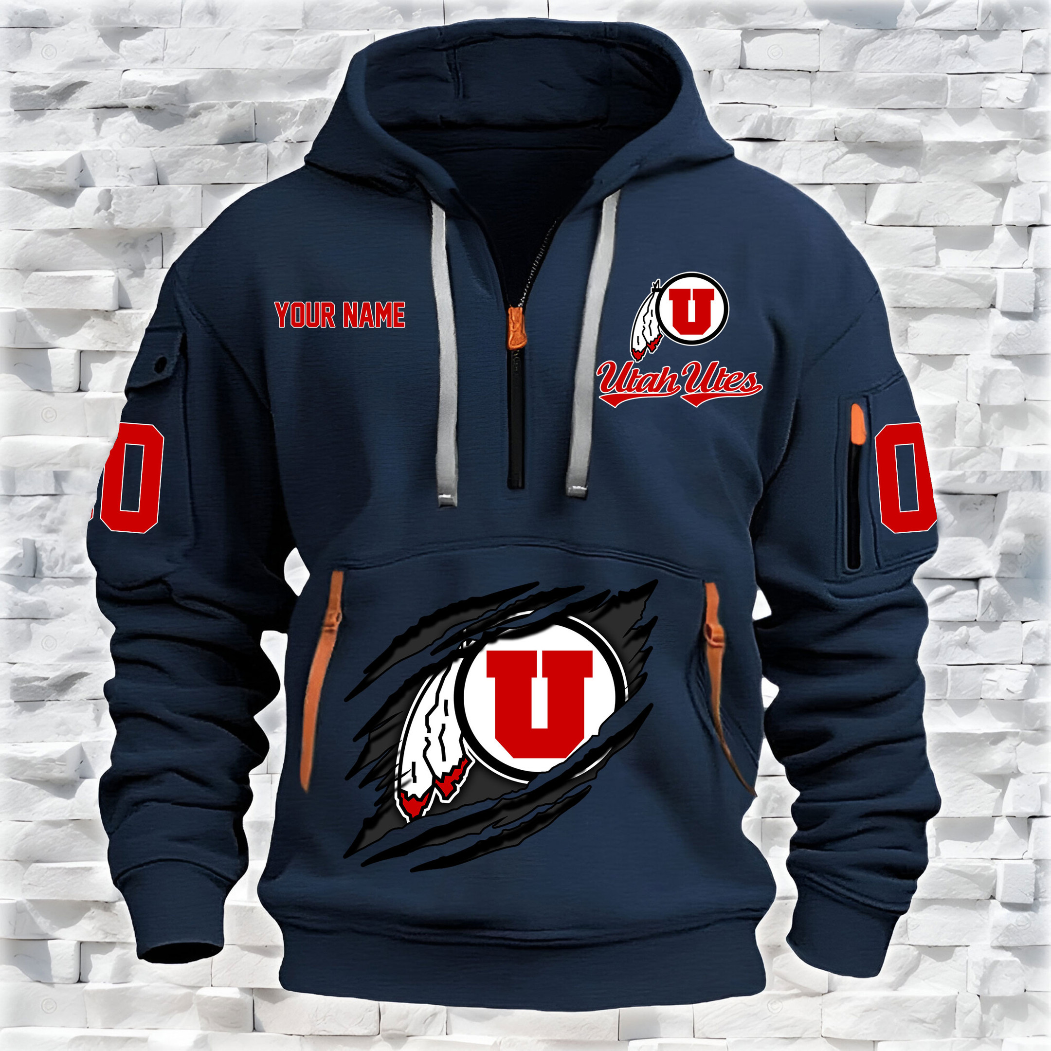 Utah Utes – Custom Name and Number Quarter Zip Hoodie