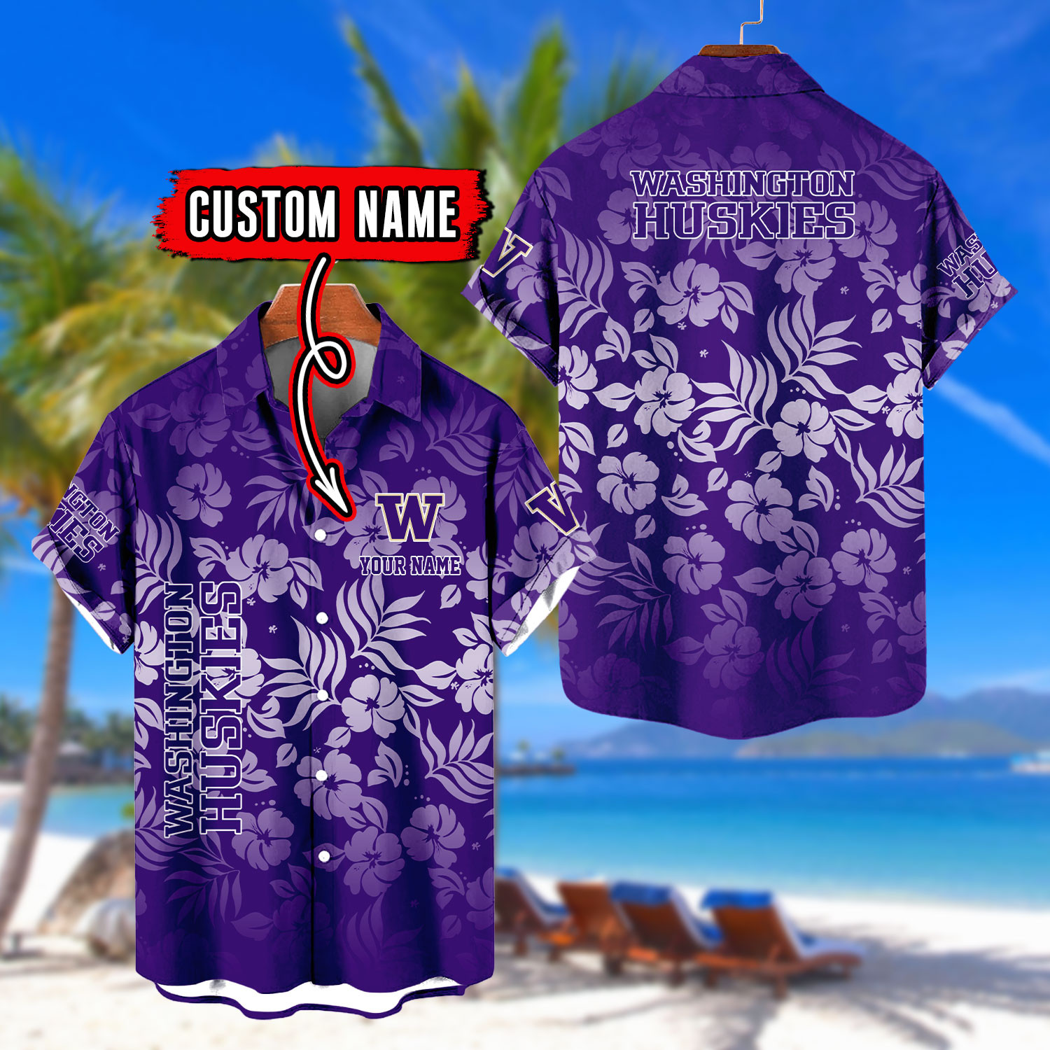 Washington Huskies | Custom Name Tropical Floral Aloha Shirt for Fans FT18326