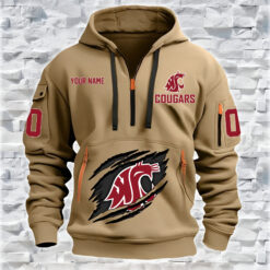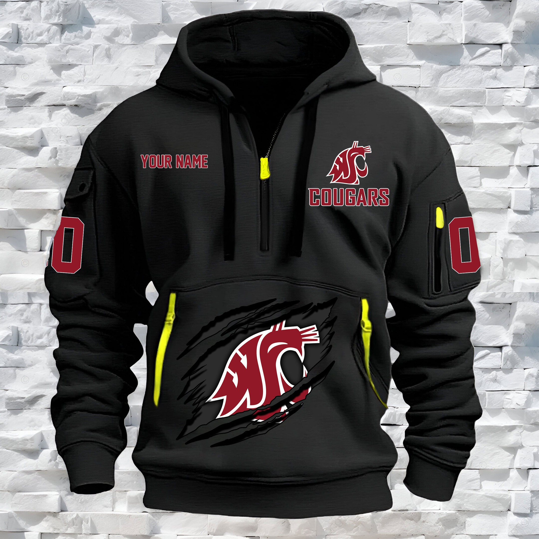 Washington State Cougars – Custom Name and Number Quarter Zip Hoodie