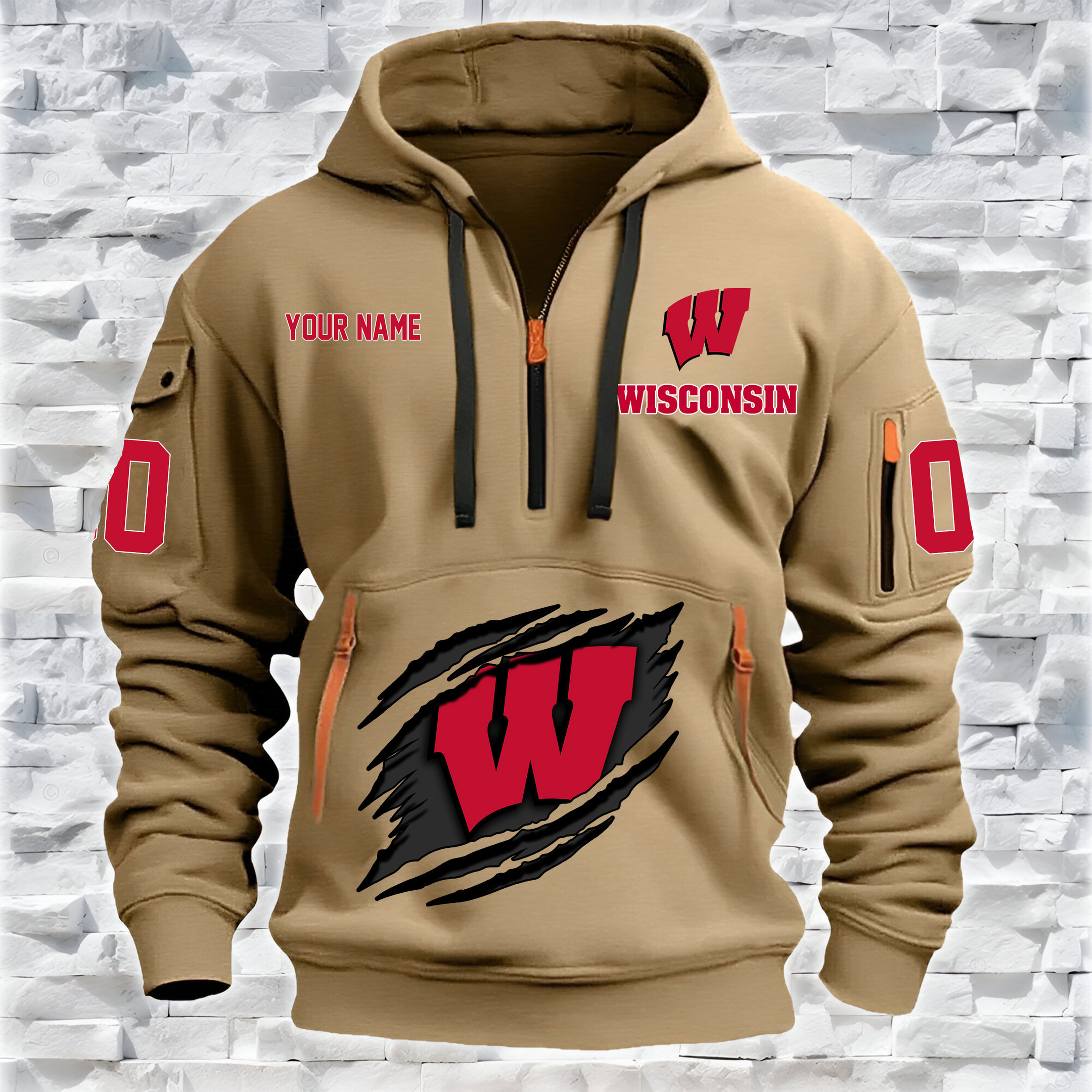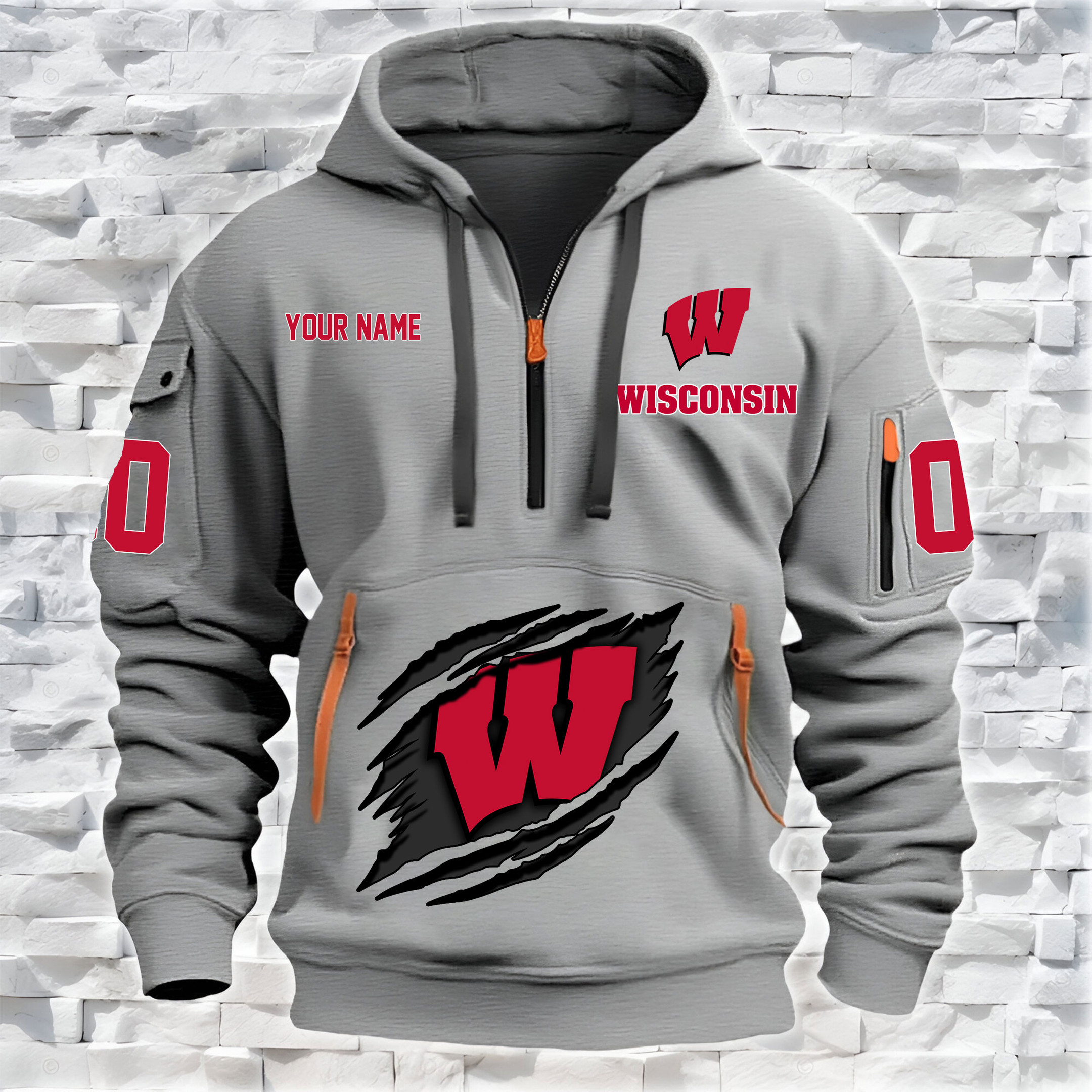Wisconsin Badgers – Custom Name and Number Quarter Zip Hoodie
